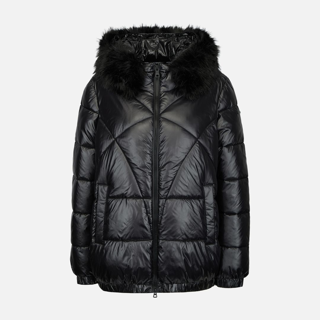 Dámská péřová bunda Geox Backsie vás ochrání před zimním chladem, zatímco budete vypadat elegantně a sofistikovaně díky lesklému provedení a luxusní kožešinové kapuci.