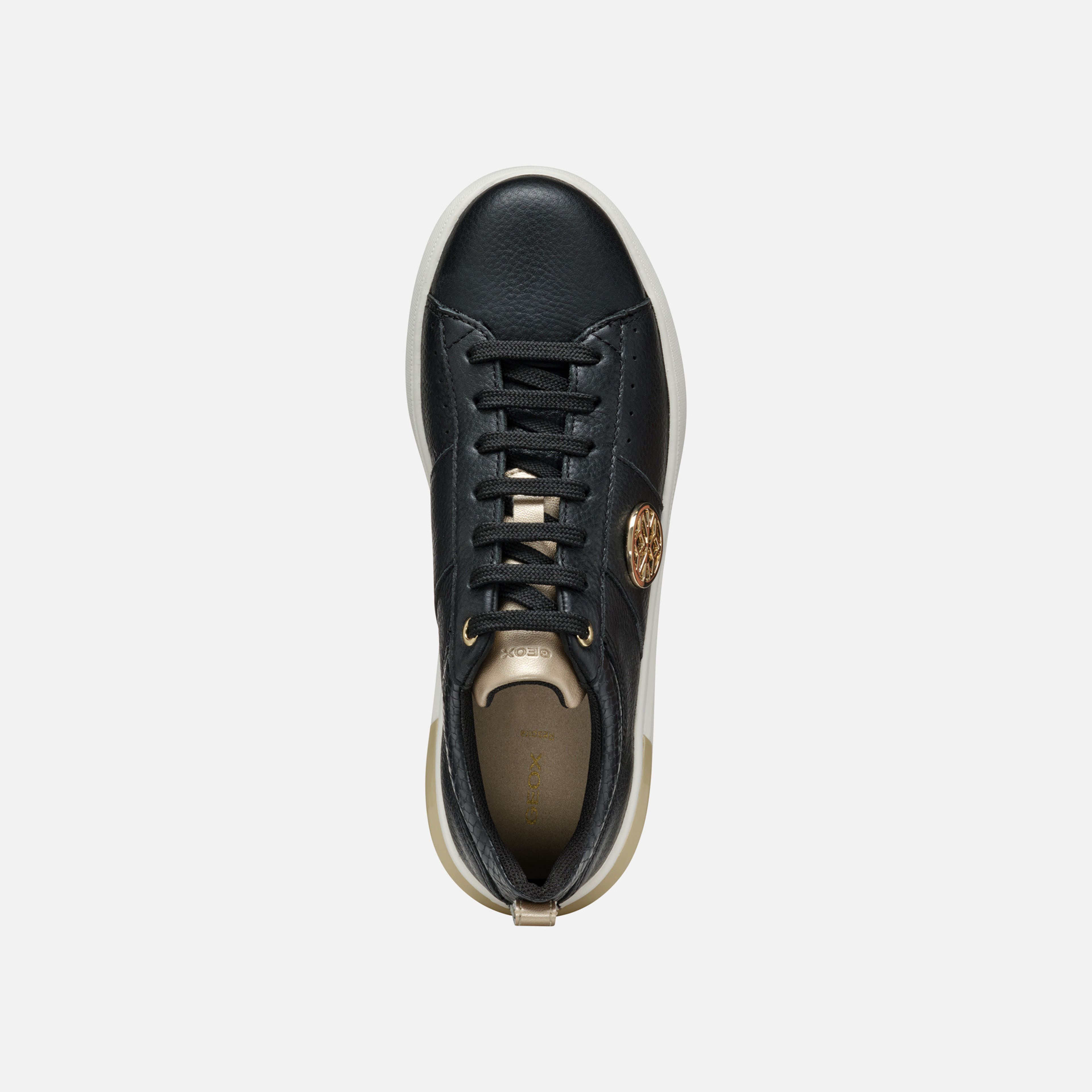 Elegantní dámské tenisky Geox Dalyla v černém provedení zaujmou na první pohled svými zlatými detaily. Výrazné prvky zahrnují stylový zlatý emblém na boku a dekorativní zlaté akcenty na patě, které dodávají botám luxusní vzhled.