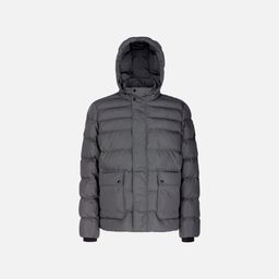 Pánská péřová bunda Geox Leitan v elegantní šedé kombinuje prémiovou tepelnou izolaci s revolučním systémem prodyšnosti pro dokonalý komfort během chladných dnů.