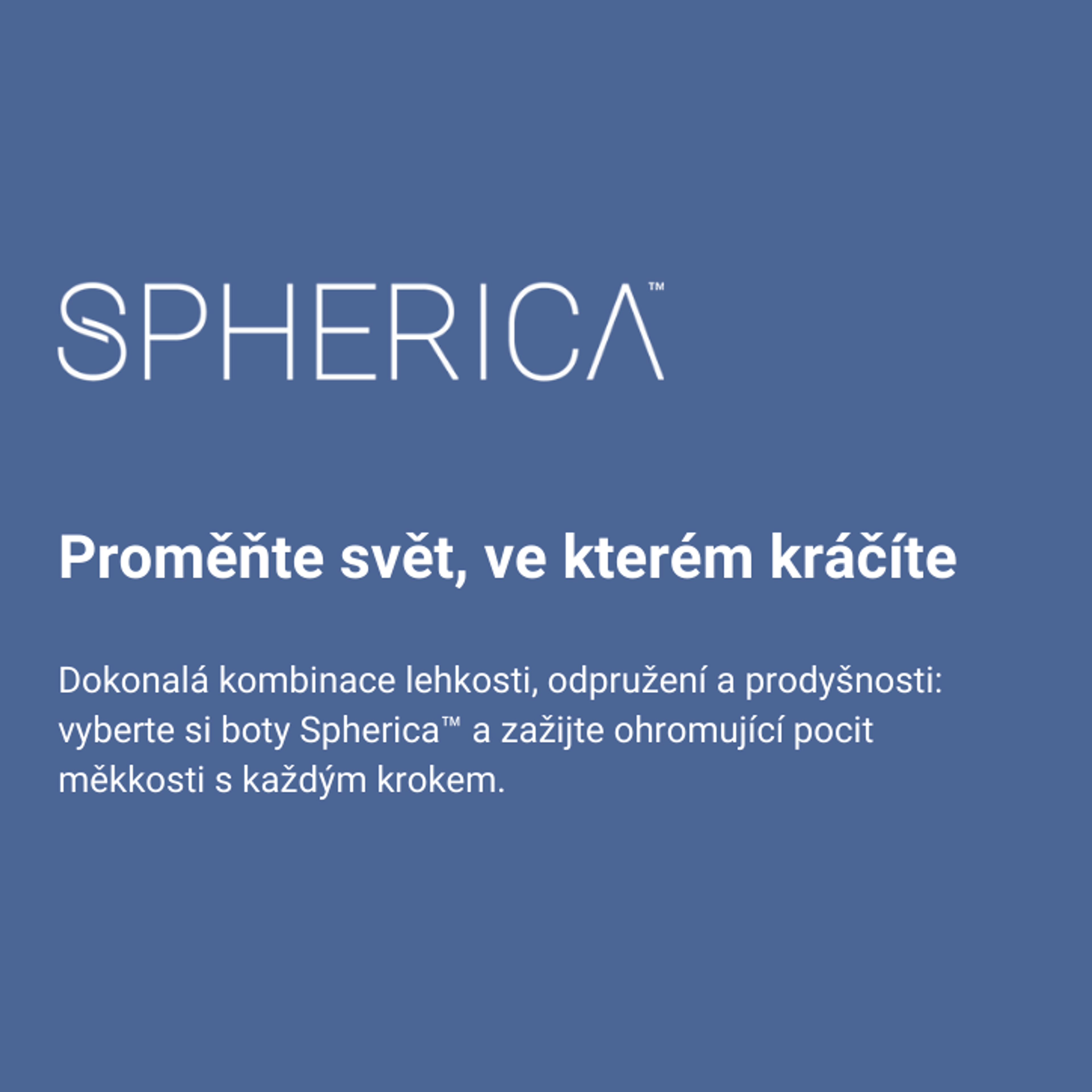 Technologie Spherica™ využívá systém měkkých kruhových prvků v podrážce, které efektivně tlumí nárazy při každém kroku. Díky patentované membráně RESPIRA™ zajišťuje aktivní odvětrávání a udržuje nohy v suchu. Lehká konstrukce a ergonomický design poskytují celodenní pohodlí bez únavy.