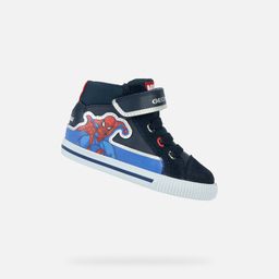 Tato tmavě modrá verze s královsky modrými detaily zaujme grafickými prvky a nášivkami s motivem Spider-Mana. Model vznikl ve spolupráci Geox a Marvel a spojuje hravý design s pohodlím pro každodenní nošení.