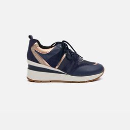 Tmavě modré dámské tenisky na klínku s koženými detaily Geox Zosma